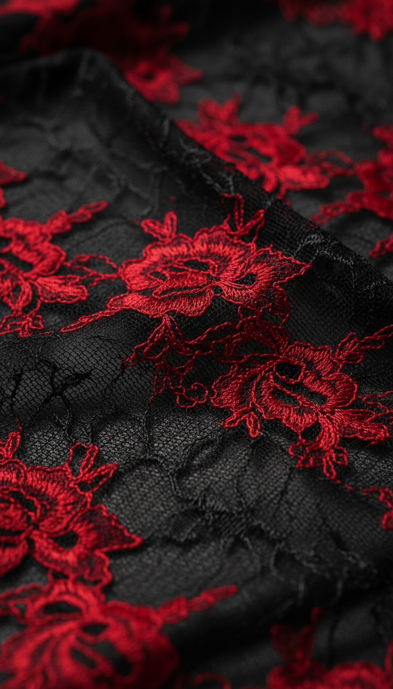Encaje Chantilly de alta densidad, microfibra satinada y mesh suave que acarician tu piel sin marcarla.